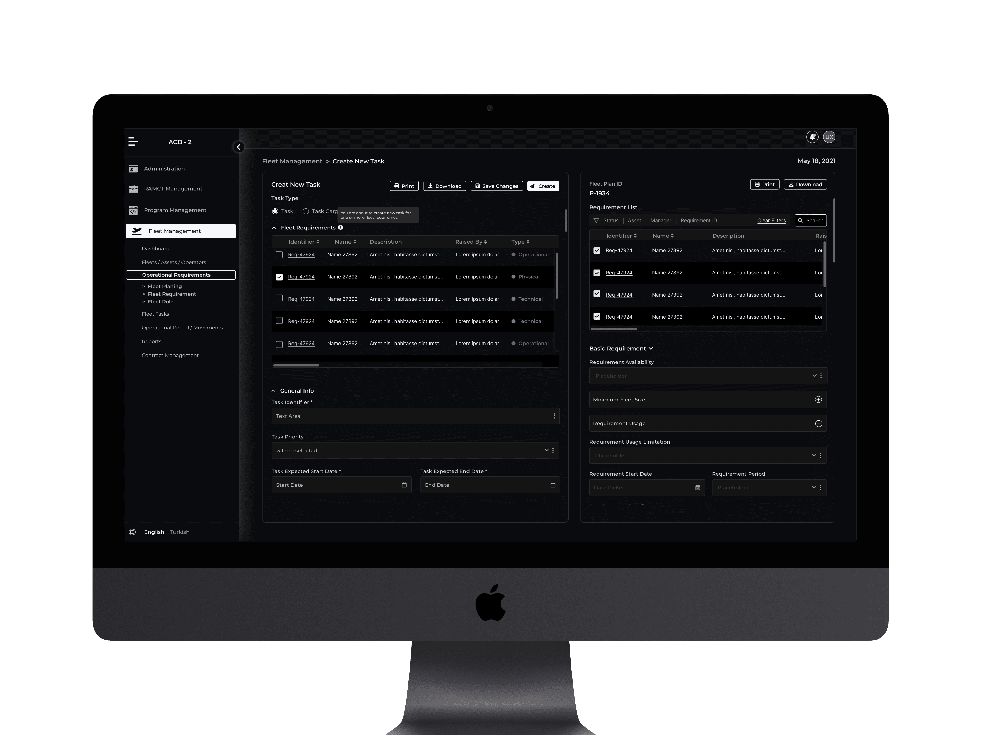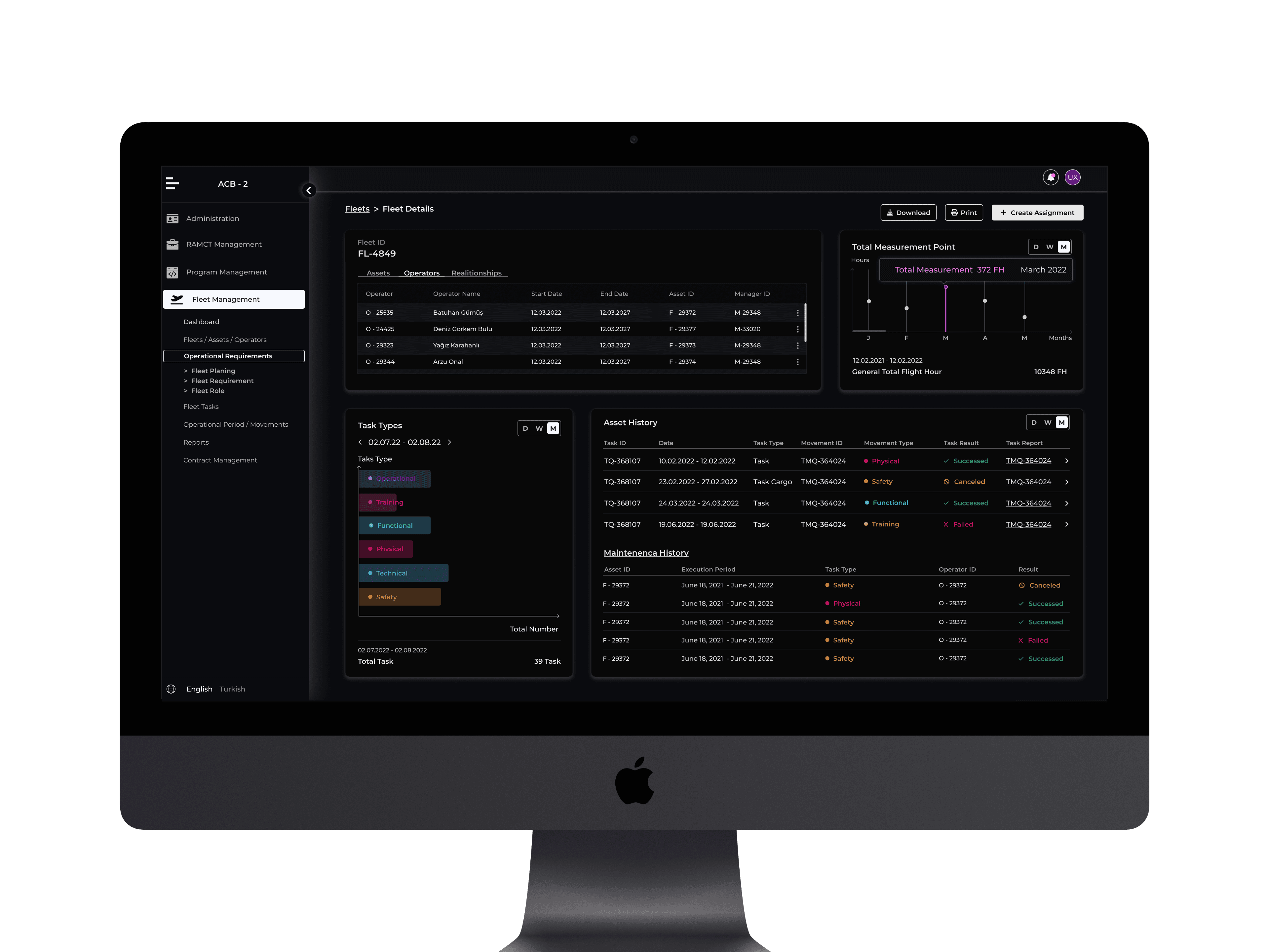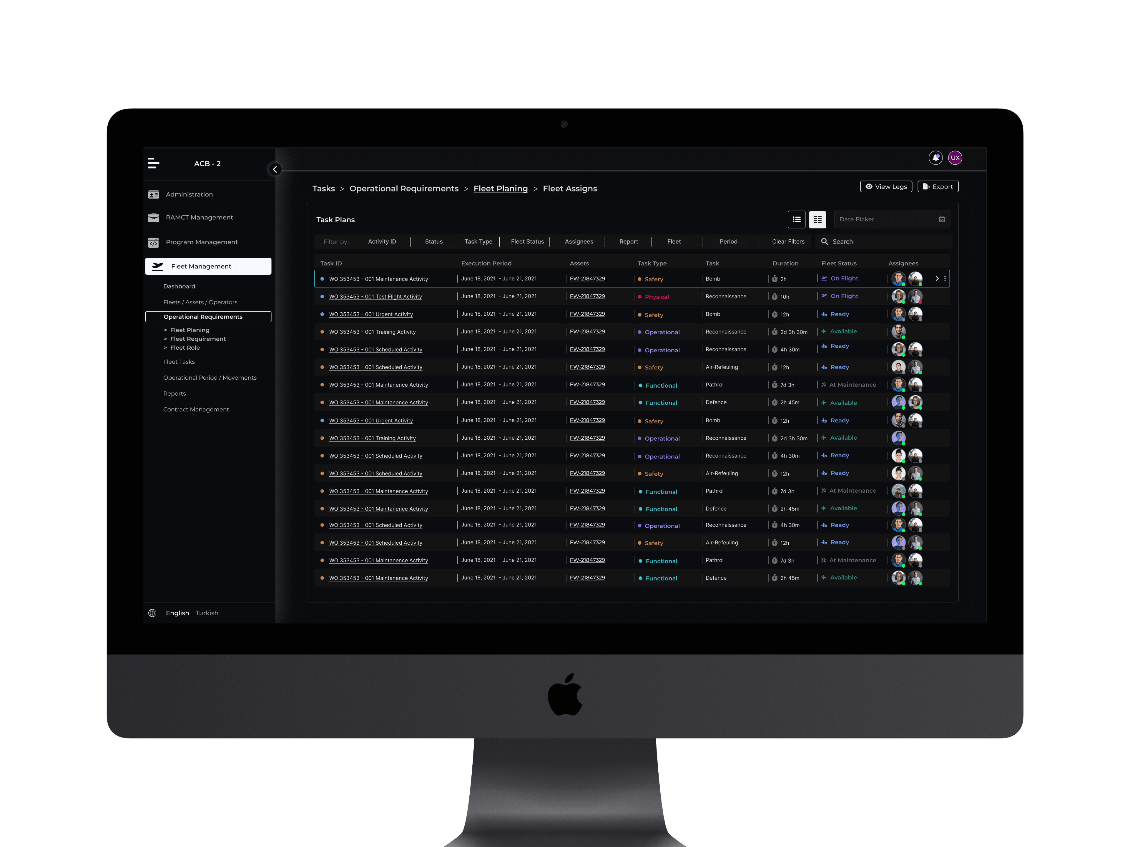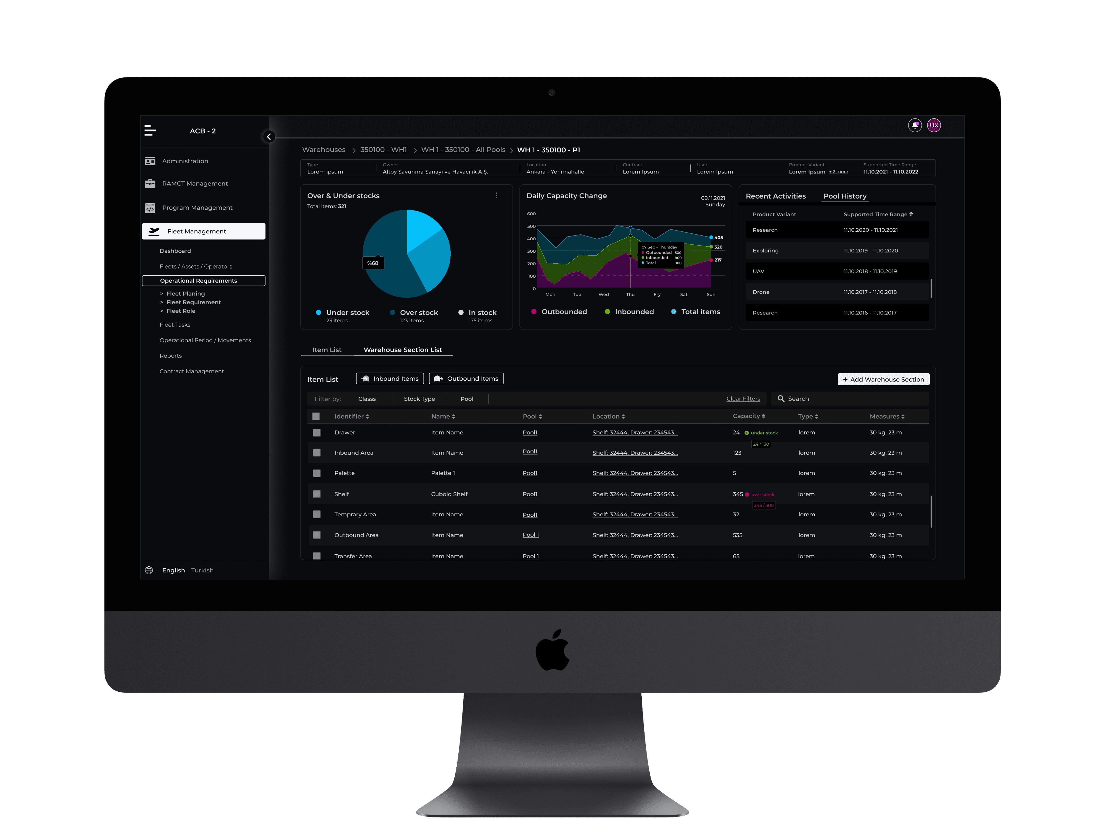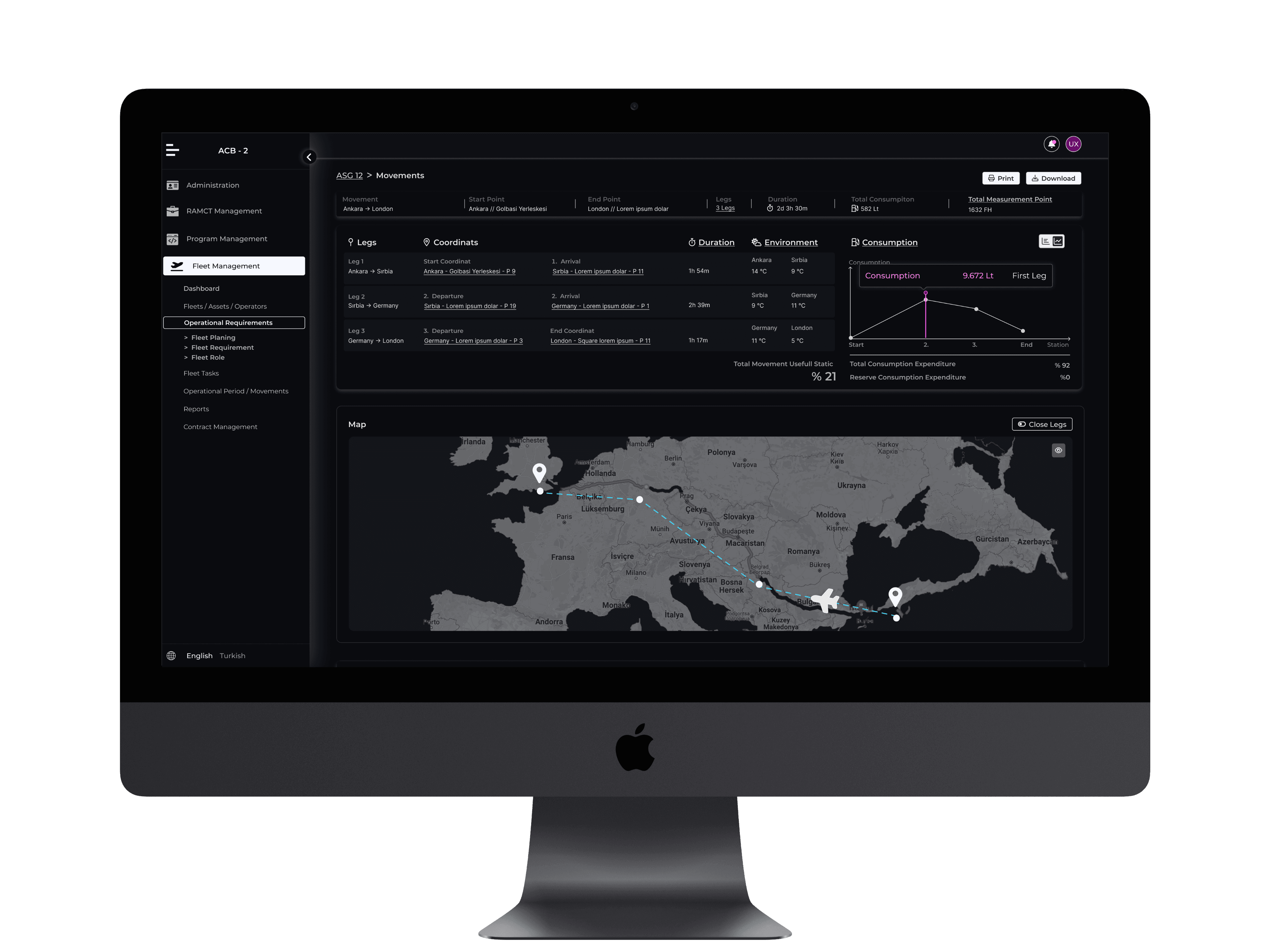 In modern military and civil logistic operations, the secure, fast, and efficient transportation of ammunition, equipment, fuel, first aid, and essential supplies by cargo aircraft is of critical importance. This project aims to design a user-friendly fleet management system that optimizes the management of logistic cargo vehicle.