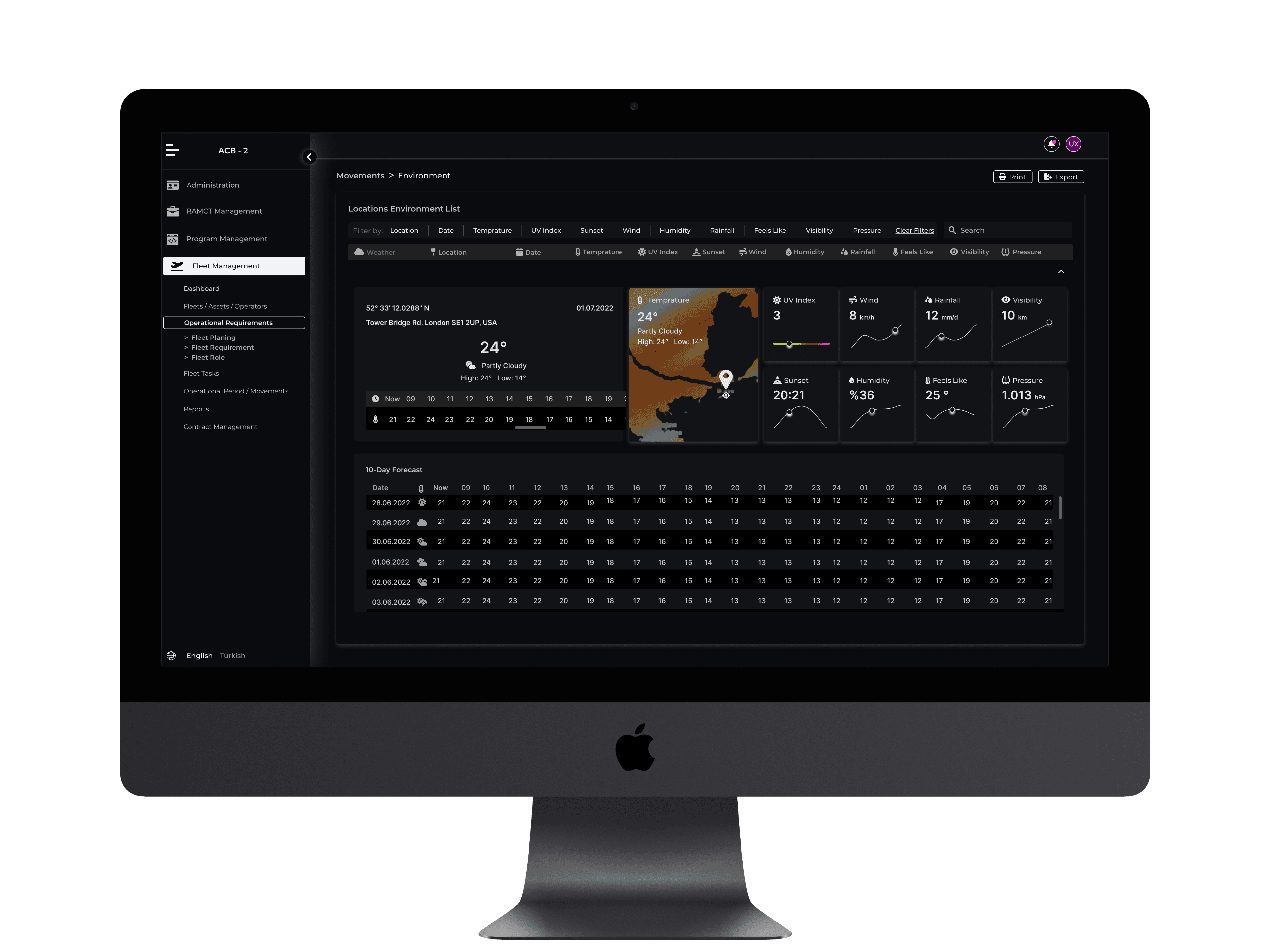 The Environment Page provides a high-resolution meteorological overview, ensuring precise environmental awareness for operational planning and decision-making.